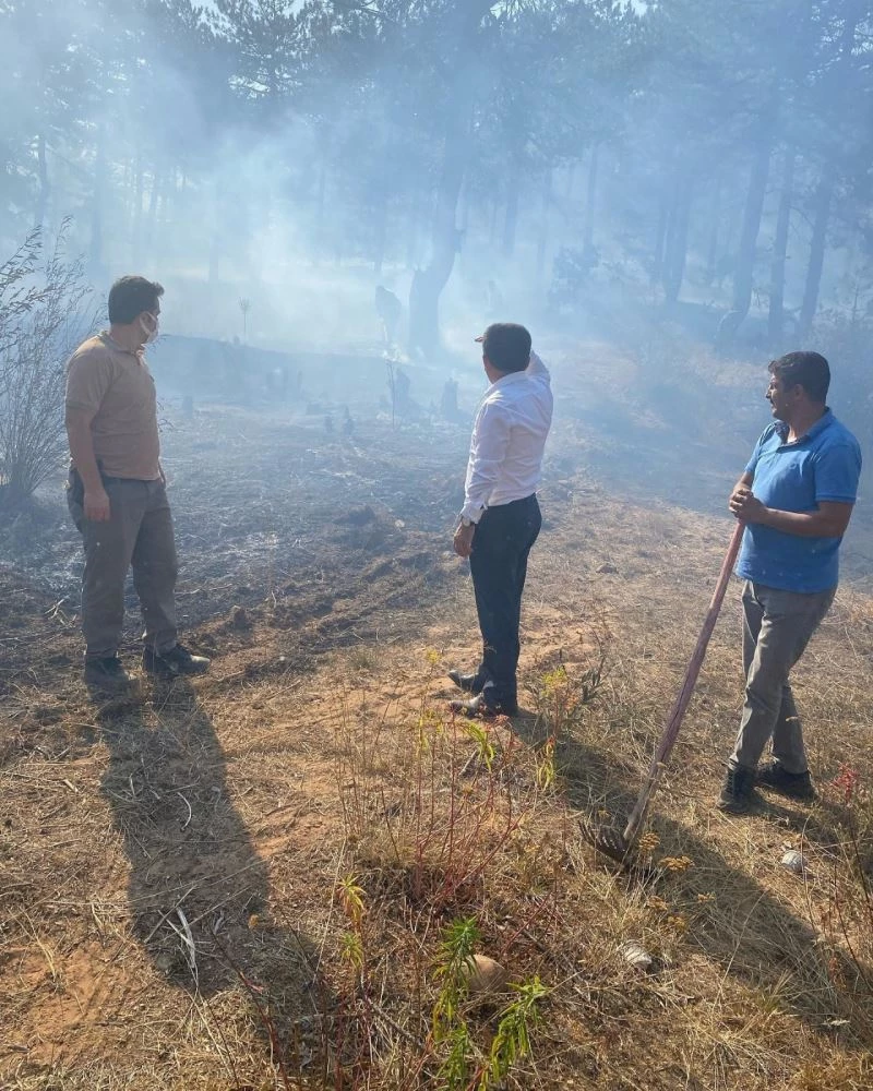 Doğanbeyli Mahallesi’ndeki ormanlık alanda saat 14.00 sıralarında çıkan yangına 5 arazöz, 2 su tankı ve 1 helikopter ile müdahale edildi. Yangın kısa sürede kontrol altına alırken bölgede soğutma çalışmaları sürüyor.