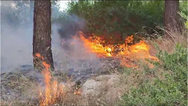 Karacaoğlan Mahallesi'ndeki 100. Yıl Hatıra Ormanı'nda henüz belirlenemeyen nedenle yangın çıktı.