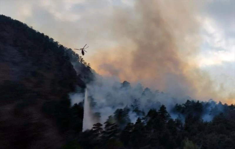 Sarp arazi yapısı nedeniyle yangına sadece havadan müdahale ediliyor.