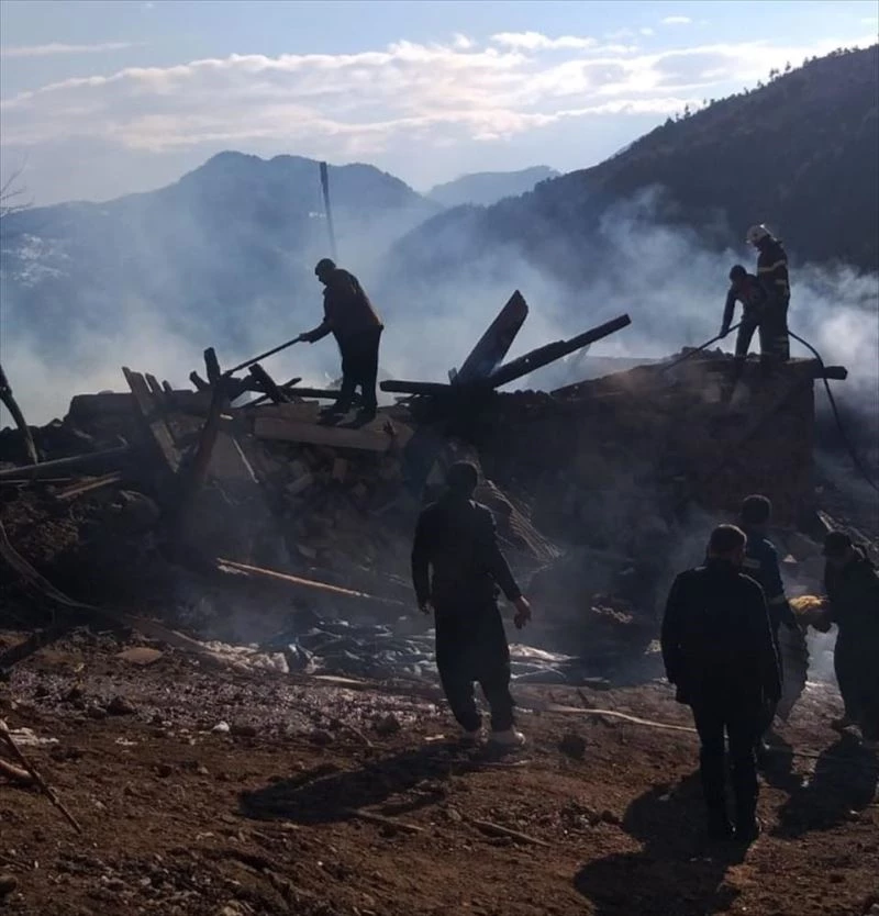 Yangın sonucu ev kullanılmaz hale geldi.