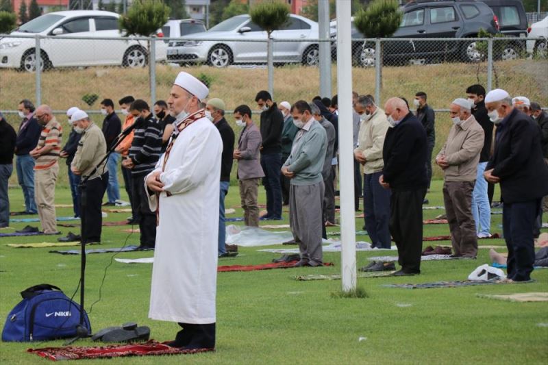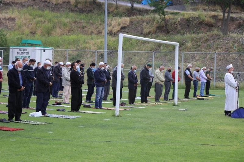 Tufanbeyli ilçesinde de vatandaslar cuma namazini ilçede bulunan güres alani ve camilerin avlusunda kildi.