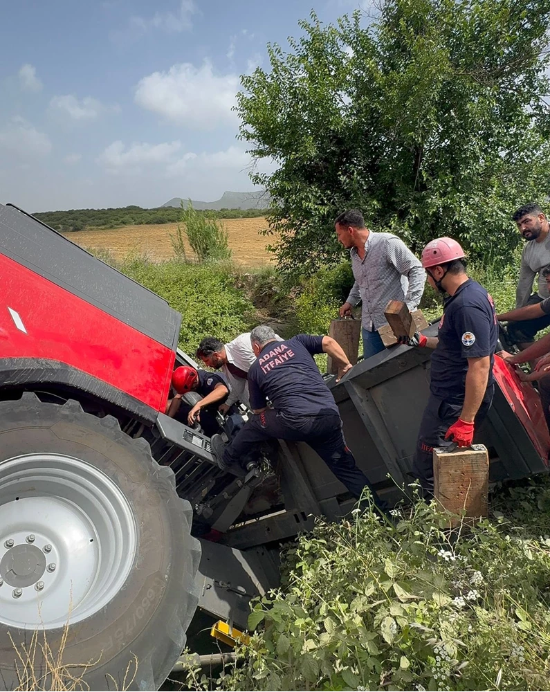 Adana'da devrilen biçerdöverin altında sıkışan sürücüsü kurtarıldı