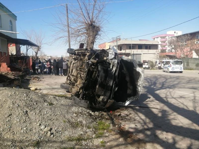 Adana'da devrilen hafif ticari araçtaki 2 kişi yaralandı