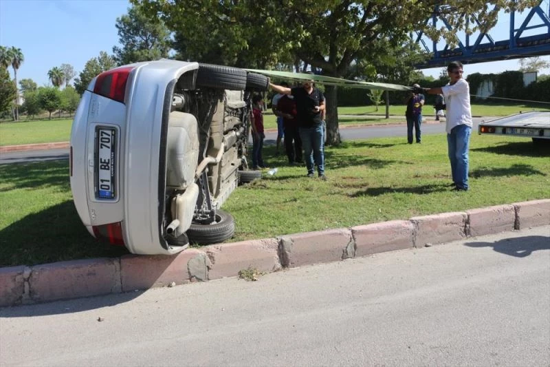 Alinan bilgiye göre, Cafer Dag idaresindeki 01 BE 707 plakali otomobil, Seyhan ilçesi Haci Ömer Sabanci Bulvari'nda kaldirima çarparak devrildi.