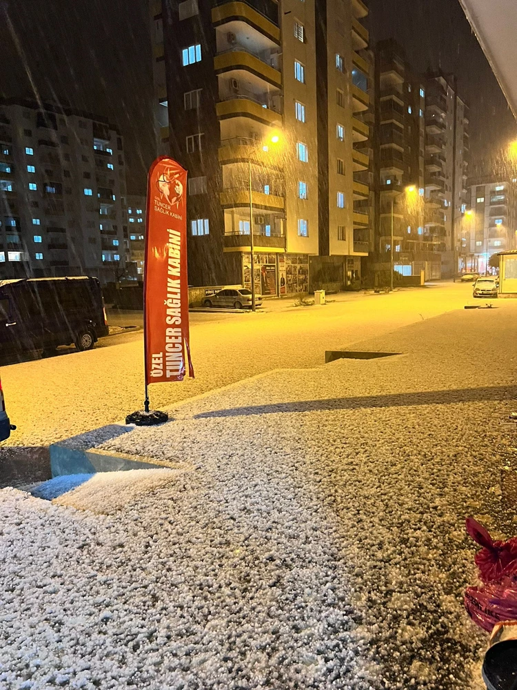 İlçe merkezinde dolu nedeniyle trafikte aksamalar oldu, vatandaşlar zor anlar yaşadı.