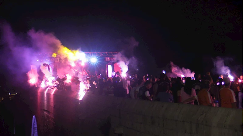 Davul zurna eşliğinde eğlenen taraftarlar, havai fişek gösterisinin ardından meşaleler yaktı.