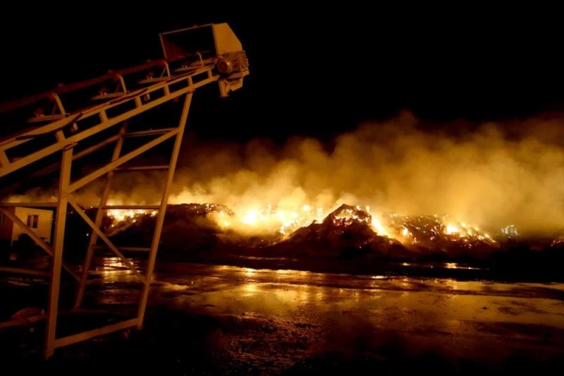 Çok sayıda görevlinin katıldığı ve gece boyunca devam eden çalışmalarda, yanan maddenin tarımsal atık balyaları olması nedeniyle müdahalede güçlük çekiliyor.