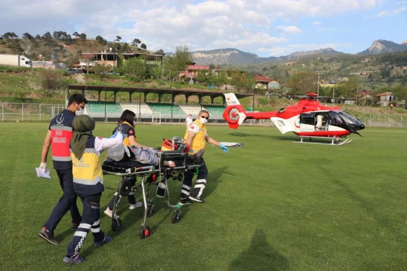 Durumu agirlasan T.Ö, Pozanti ilçe stadina inen ambulans helikopterle Adana Sehir Hastanesine kaldirildi.