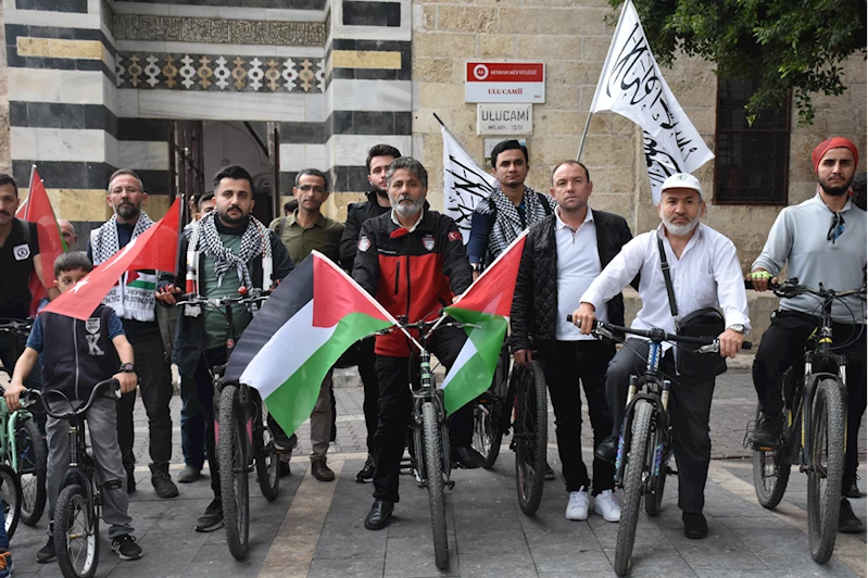 ADANA - Adana'da, İnsan Hak ve Hürriyetleri (İHH) İnsani Yardım Vakfı öncülüğünde Filistin'e destek için bisiklet turu yapıldı.