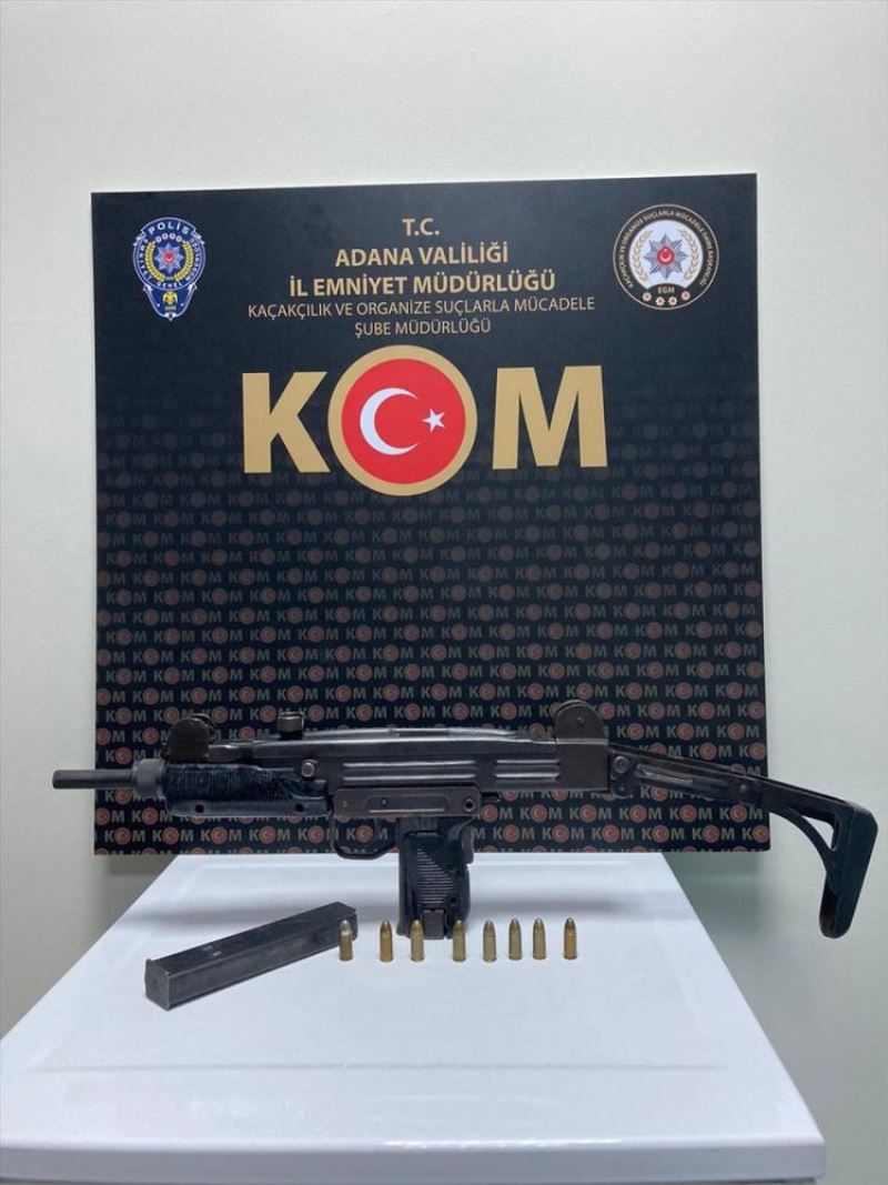 Evde yapılan aramada, yatak odası dolabında Uzi marka hafif makineli silah ele geçirildi.
