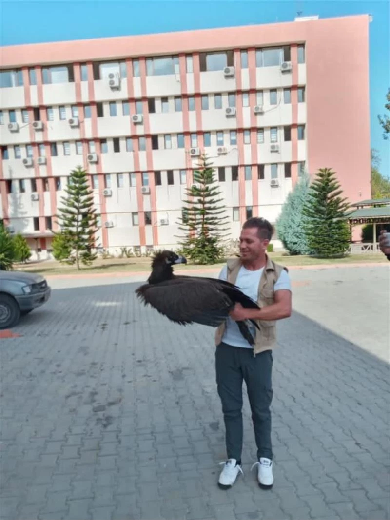 Vatandaslar tarafindan hasta halde bulunan nesli tükenme tehlikesi altindaki kara akbaba (Aegypius monachus), Doga Koruma ve Milli Parklar 7. Bölge Müdürlügü ekiplerine teslim edildi. Akbaba, burada ilk tedavi ve bakimlarinin yapilmasinin ardindan Tarsus Hayvanat Bahçesinde korumaya alindi.