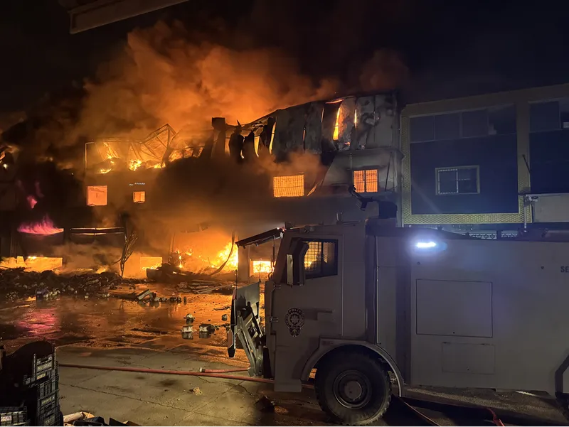 Bitişik iş yerlerine de sıçrayan yangını söndürme çalışmaları devam ediyor.