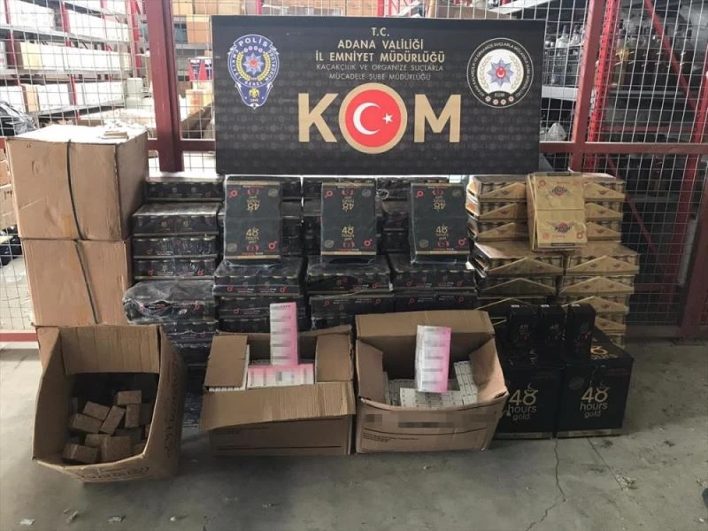 Il Emniyet Müdürlügü Kaçakçilik ve Organize Suçlarla Mücadele Subesi ekipleri, merkez Seyhan ilçesi Yesiloba Mahallesi'ndeki bir is yerinde kaçak ürün bulundugunu belirledi.
