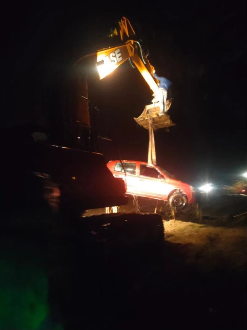 Araç, yaklaşık 2 saatlik çalışmayla sudan çıkarıldı.
