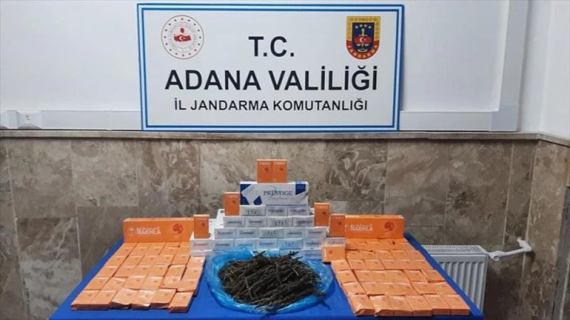 ADANA - Adana'da jandarma ekiplerinin gerçekleştirdiği asayiş denetimlerinde, araçlarında uyuşturucu, gümrük kaçağı sigara ve nargile tütünü ele geçirilen 3 kişi gözaltına alındı.