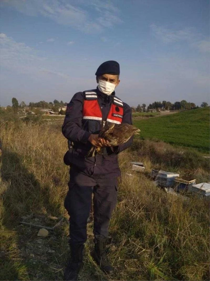 ADANA - Adana'nın Yumurtalık ilçesinde, jandarma ekiplerince yaralı bulunan şahin tedavi altına alındı.