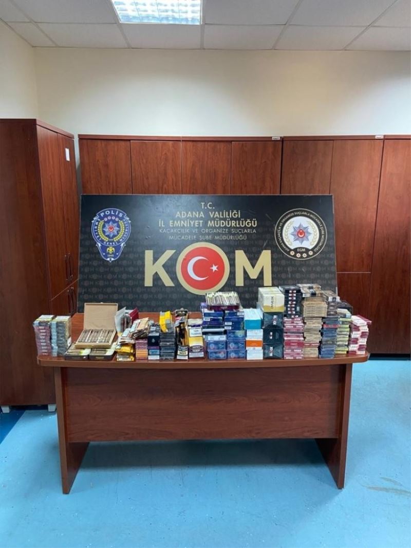 Adana’da piyasa değeri 135 bin lira olan kaçak sigara, puro ve içki ele geçirildi.