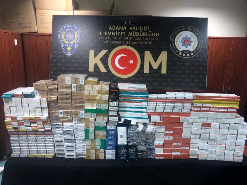 Adana polisinin yaptığı operasyonda 2 bin 230 paket kaçak elektronik sigara, 500 paket sigara, bin 785 kaçak puro, 137 paket kaçak pipo tütünü ve bin 750 litre kaçak akaryakıt ele geçirildi.