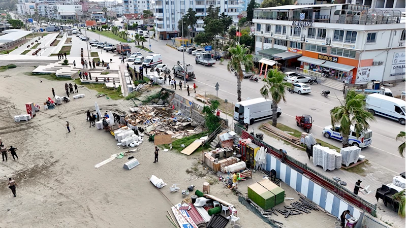 "İmar ve Kıyı Kanunu'na göre aylarca yapılan tüm uyarı ve tebligatlar doğrultusunda, ruhsatsız ve kaçak yapılardan yapı kayıt belgesi alarak yürütmeyi durdurma kararı alanlar hariç, vatandaşlardan zorla otopark ücreti talep eden, çeşitli gerekçelerle para toplayan, kaçak elektrik ile su kullanan, devletin hüküm ve tasarrufu altında bulunan arazileri işleterek haksız kazanç elde eden ve kamu düzeni ile genel ahlak açısından risk teşkil eden, kullanım amacı net olarak belirlenmemiş saatlik konaklama hizmeti sunan tüm yapılar gündüz ve gece yapılan çalışmalarla yıkıldı. Karataş sahillerinin vatandaşların ücretsiz ve güvenli şekilde faydalanabileceği alanlar haline getirilmesi amacıyla yürütülen çalışmalar, vatandaşlar tarafından da büyük takdirle karşılandı."