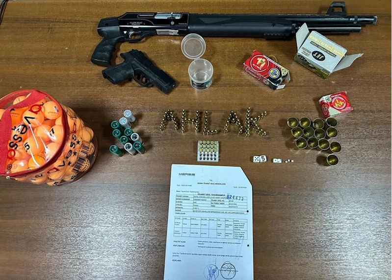 Ekiplerce, iş yerlerinde yapılan aramalarda ruhsatsız tabanca ve pompalı tüfek ile kumar oynanması için kullanılan malzemeler ele geçirildi.