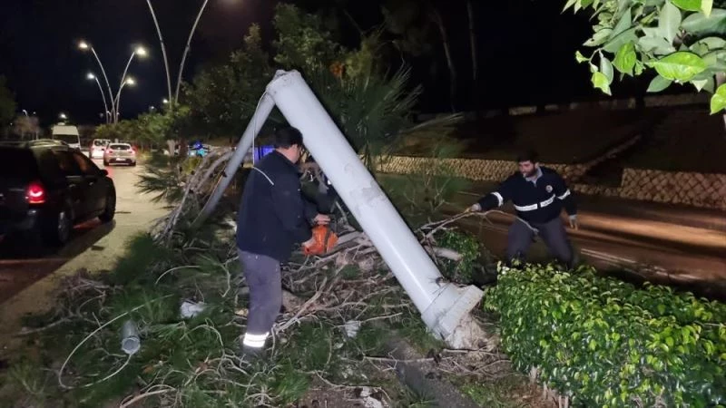 Kentte etkili olan şiddetli rüzgar dolayısıyla Adnan Menderes Bulvarı'nda bulunan ağaç devrildi. Ağaç, çarptığı aydınlatma direğinin de devrilmesine neden oldu.