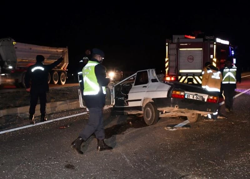 Serdar Sürücü yönetimindeki 01 R 0433 plakalı otomobil, İmamoğlu-Adana kara yolunda önünde seyreden traktörün römorkuna arkadan çarptı.