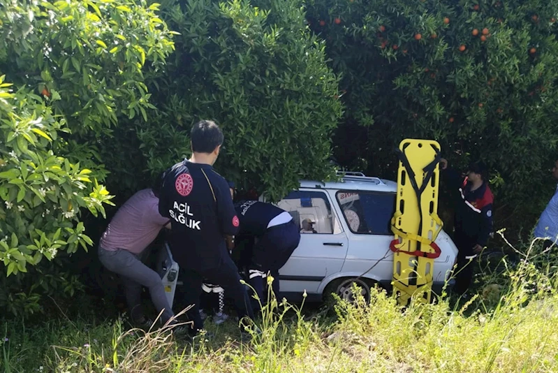 ADANA - Adana'nın Kozan ilçesinde, otomobilin narenciye bahçesine devrilmesi sonucu 4 kişi yaralandı.