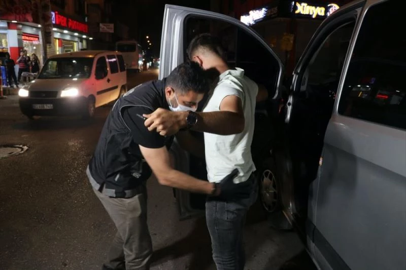 Kisi ve araçlarda yapilan aramalarda 0,5 gram metamfetamin, 16 gram esrar, 10 sentetik uyusturucu hap, 1 kurusiki tabanca ve biçak ele geçirilirken, 15 kisiye uyusturucu bulundurmaktan, 1 kisiye maksat disi biçak bulundurmaktan islem yapildi, "hirsizlik" suçundan aranan 1 kisi ise gözaltina alindi.