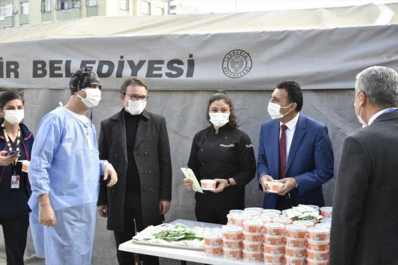 ADANA (AA) - Adana’da lise öğrencilerince hazırlanan aşure, yeni tip koronavirüs (Kovid-19) ile mücadele eden sağlık personellerine ikram edildi.