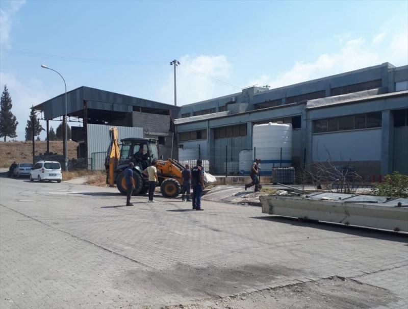 Alınan bilgiye göre, AOSB'de daha önce akü imalathanesi olarak kullanılan iş yerinin önündeki 2 plastik kazan tanışma esnasında delindi.