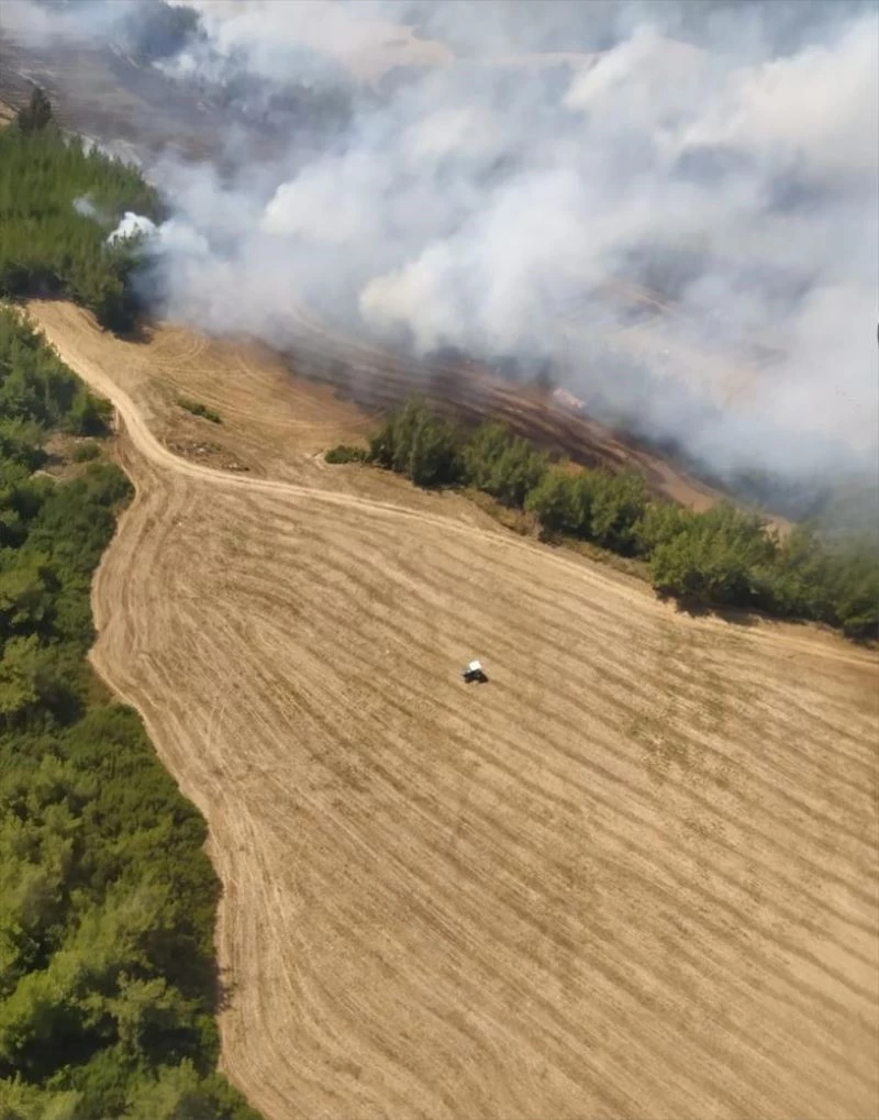 ADANA (AA) - Adana'da tarlada yakilan aniz nedeniyle ormanlik alana siçrayan alevlere müdahale ediliyor.