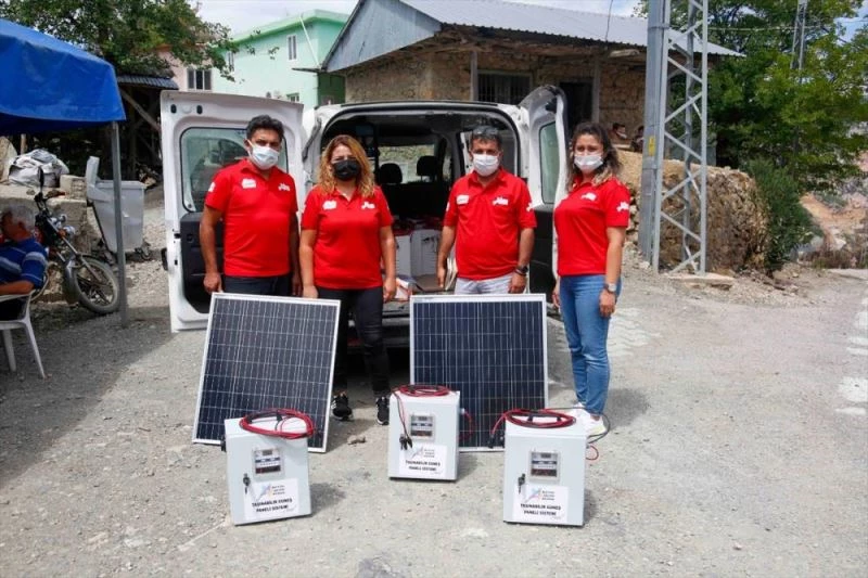 ADANA - Adana'nın Kozan ve Aladağ ilçelerinde çıkan orman yangınında evleri ve konutlarına gelen elektrik şebekesi hasar gören vatandaşlara elektrik üreten taşınabilir güneş paneli dağıtıldı.