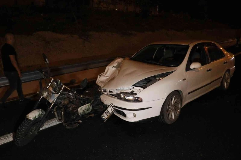 Adana’da otoyolda bir otomobil motosiklete arkadan çarptı. Kazada otomobilde bulunan 2 kişi yaralanırken motosiklet sürücüsü olay yerinde hayatını kaybetti.