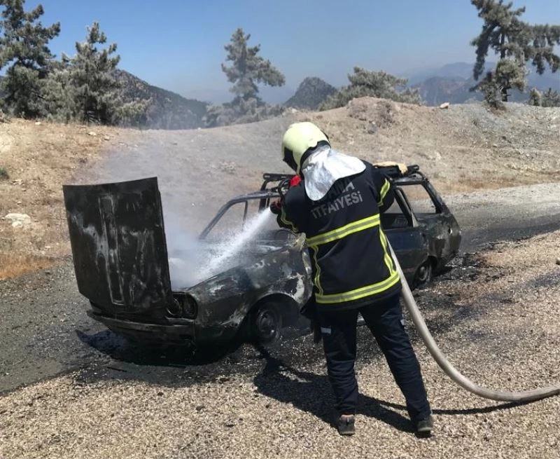 İ.T'nin kullandığı 01 FG 065 plakalı otomobil, Maran Mahallesi'nde seyir halindeyken alev aldı.