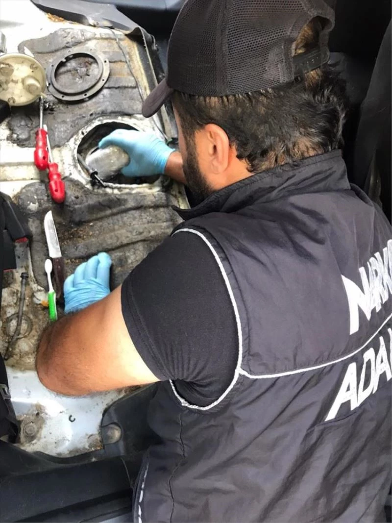 Ekip, Tarsus-Adana-Gaziantep (TAG) Otoyolu'nun merkez Sariçam ilçesi yakinindaki Incirlik Park Alaninda olusturulan uygulama noktasinda süpheli araci durdurup narkotik dedektör köpegi ile arama yapti.