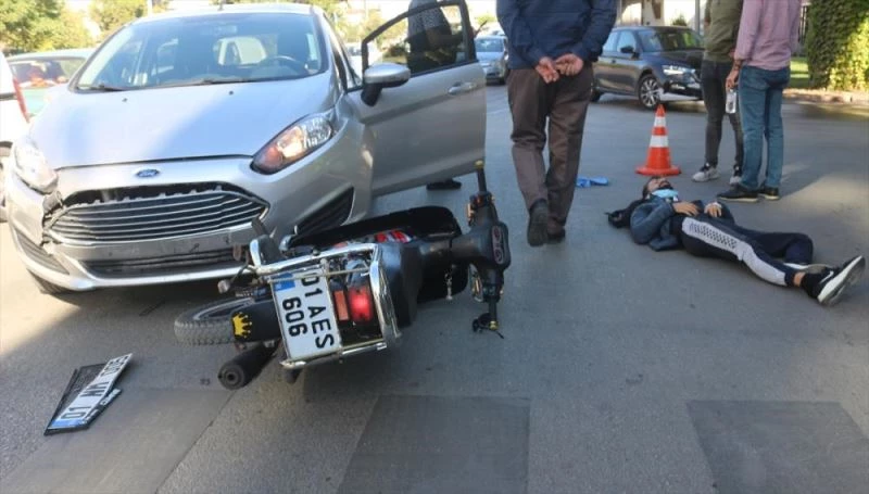 ADANA - Adana'nın merkez Seyhan ilçesinde otomobille çarpışan motosikletin sürücüsü yaralandı.