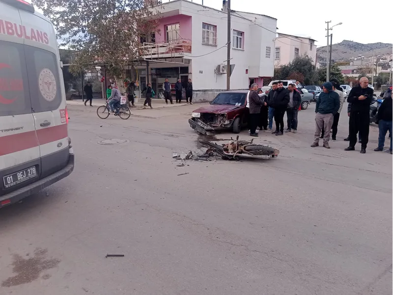 ADANA - Adana'nın Kozan ilçesinde otomobil ile çarpışan motosikletin sürücüsü yaralandı.