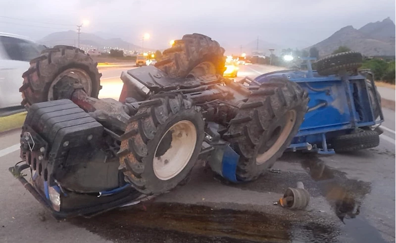 Neşet A. (61) idaresindeki 01 ADN 966 plakalı traktör, Emrah Y. (50) yönetimindeki 34 AP 0724 plakalı otomobille Sanayi Sitesi civarında çarpıştıktan sonra devrildi.