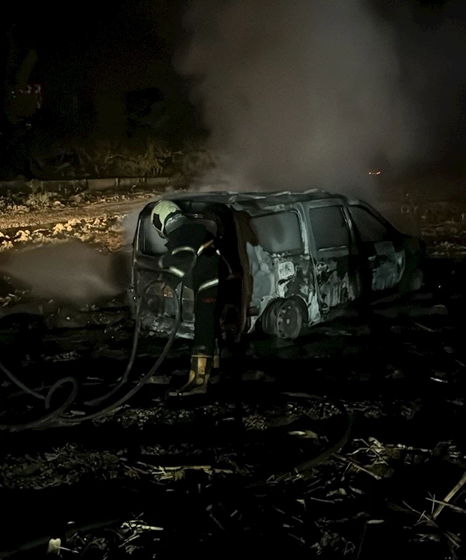 Kısa sürede aracı saran alevleri gören çevredekiler durumu itfaiyeye bildirdi.