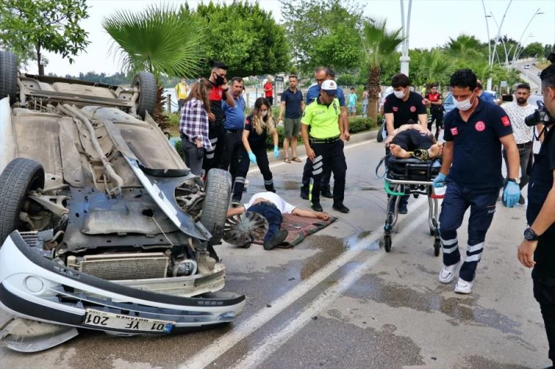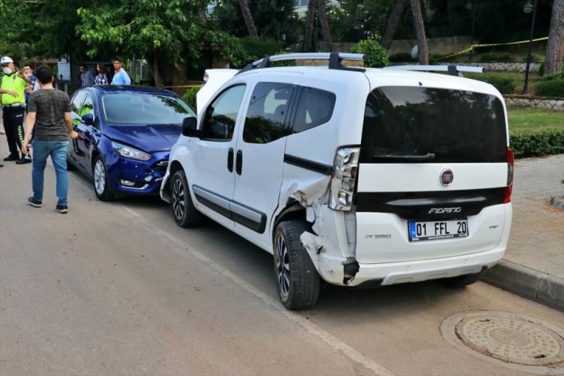 Alinan bilgiye göre, Menderes D. idaresindeki 01 YF 201 plakali otomobil, merkez Çukurova ilçesi Adnan Menderes Bulvari üzerinde seyir halindeyken park halindeki iki otomobile çarptiktan sonra takla atti.