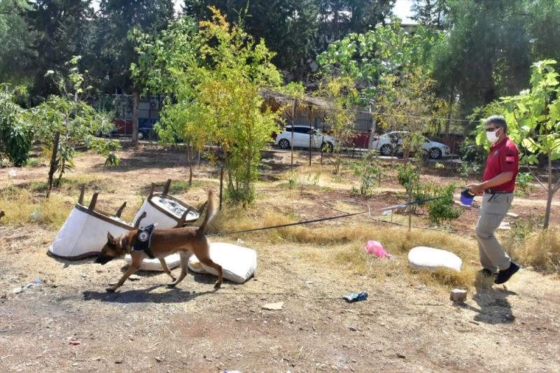 Narkotik dedektör köpeğiyle de okulların çevresindeki park ve bahçelerde uyuşturucu araması yapıldı.