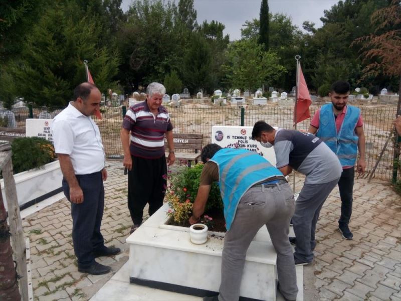 ADANA (AA) - Adana'nın Kozan ilçesinde 15 Temmuz Demokrasi ve Milli Birlik Günü etkilikleri öncesi İlçe Emniyet Müdürlüğü Toplum Destekli Polislik Büro Amirliği ekipleri ile Denetimde Serbestlik Müdürlüğünce kamu hizmeti tedbiri uygulanan hükümlüler, şehitliğe çiçek dikti, bakım ve temizliğini yaptı.