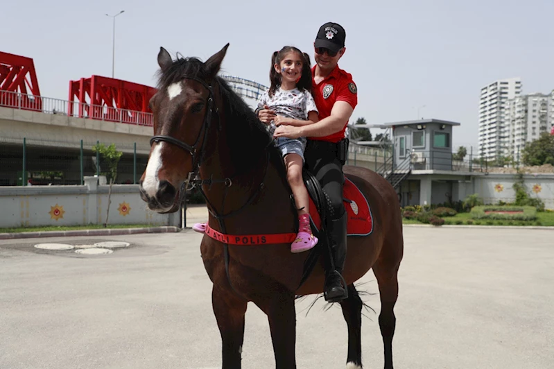 Çevik Kuvvet ve Toplum Destekli Polislik Şube Müdürlüğü ekipleri, çocuklarla yakından ilgilenip onları atlara bindirdi.