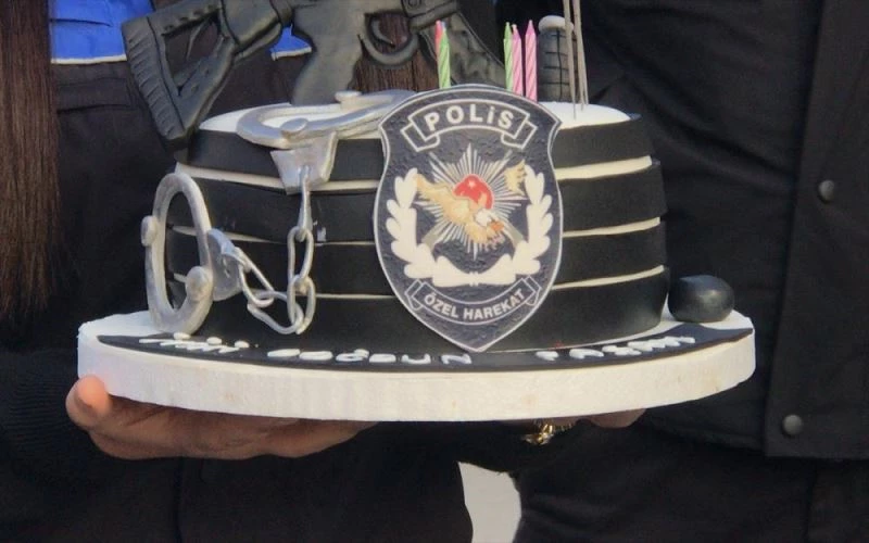 Çakar'ın ricasını kırmayan ekipler, üzerinde polis logosu bulunan pastayla ailenin yaşadığı eve gitti, Samet'e sürpriz doğum günü kutlaması yaptı.