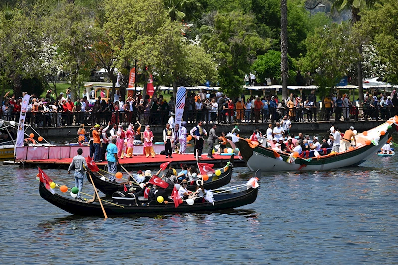 Seyhan Nehri'nde düzenlenen su kortejinde, kano, paddle board ve kürek takımları ile Büyükşehir Belediyesinin gondolları yer aldı.