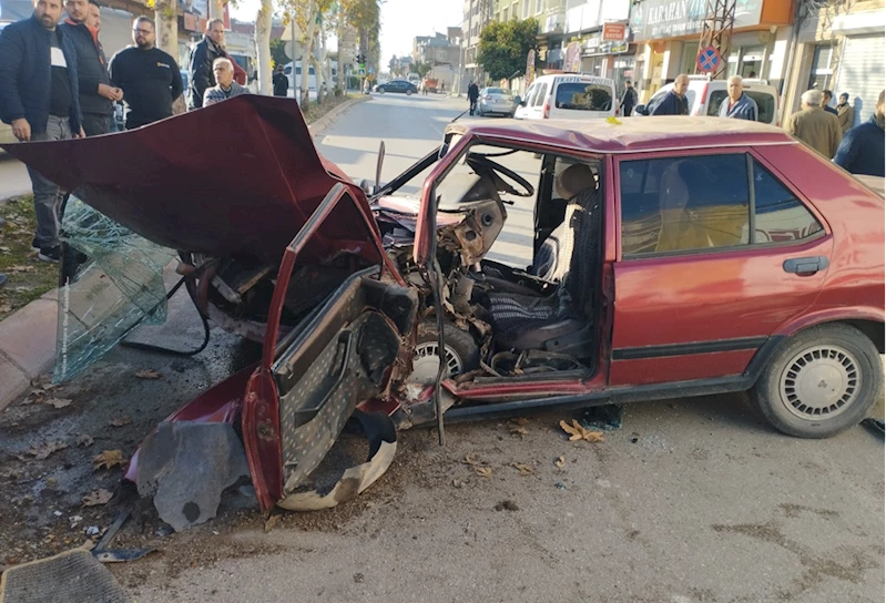 Kazada yaralanan sürücü araç içerisinde sıkıştı.
