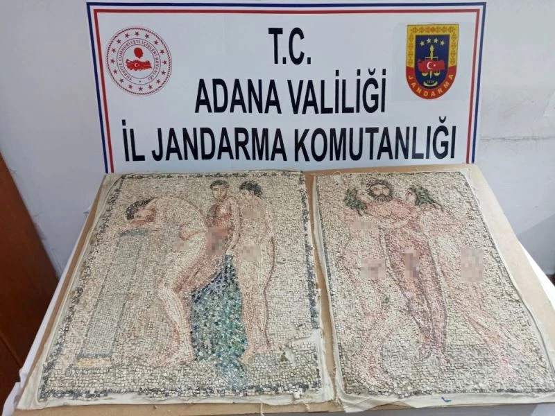 Adana’da İl Jandarma Komutanlığına bağlı ekiplerin yaptığı operasyonda Roma Dönemi’ne ait 2 adet nü mozaik ele geçirildi.