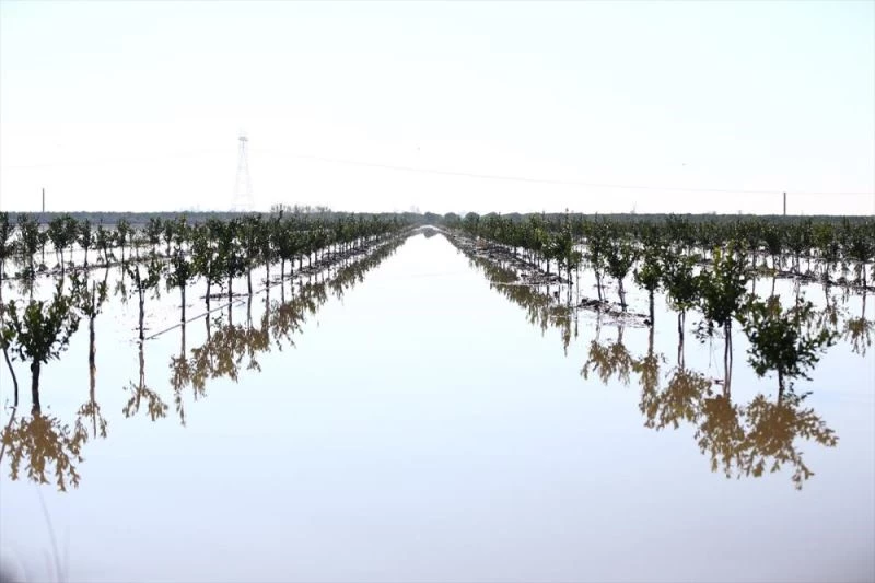 Su altında kalan narenciye bahçelerinde hem hasat gecikti hem de dökülen ürünler nedeniyle tarımsal zarar meydana geldi.