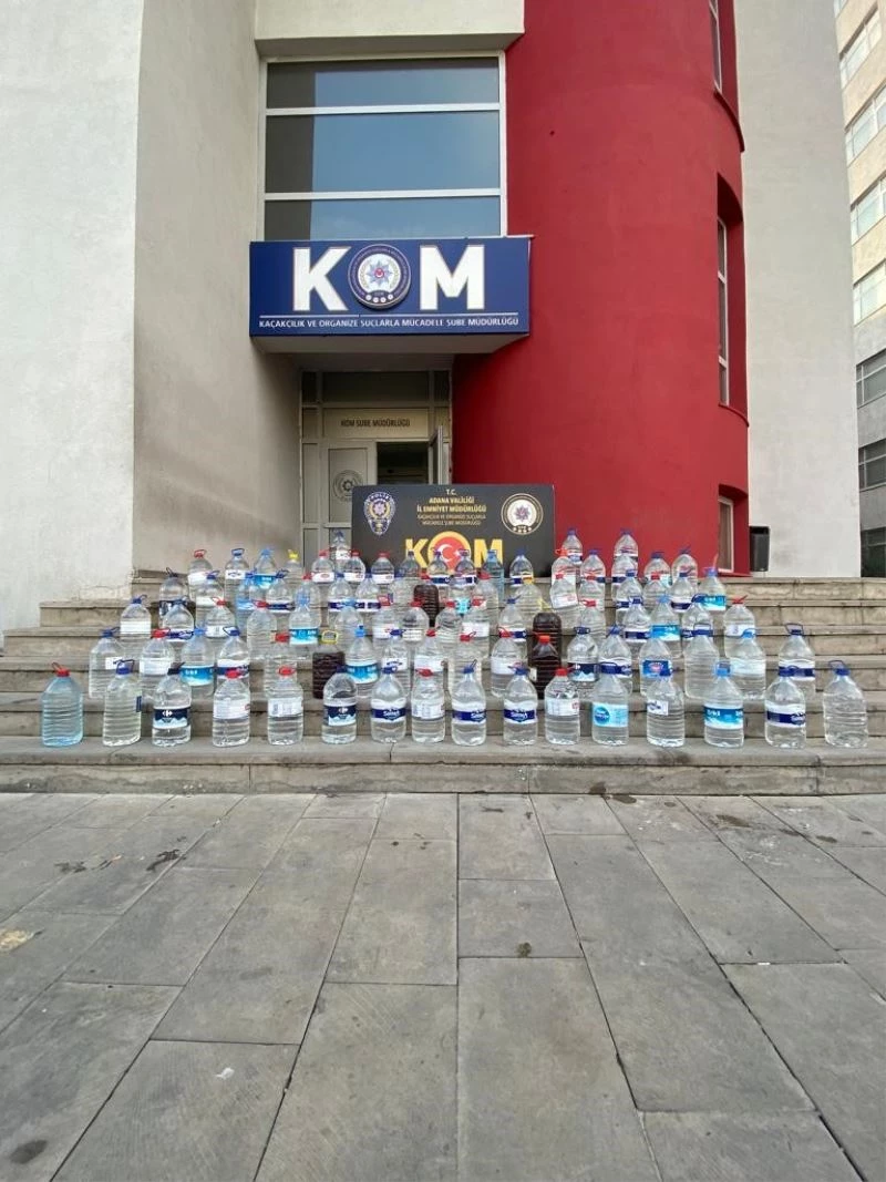 Adana’da polisin bir depoya yaptığı baskında 565 litre sahte alkollü içki ele geçirildi, 2 şüpheli gözaltına alındı.