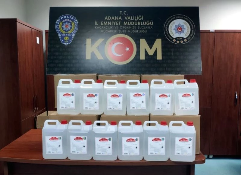 ADANA (AA) - Adana'da kargo subesinde sahte içki yapiminda kullanilacagi belirlenen 200 litre etil alkol ele geçirildi, 3 kisi gözaltina alindi.